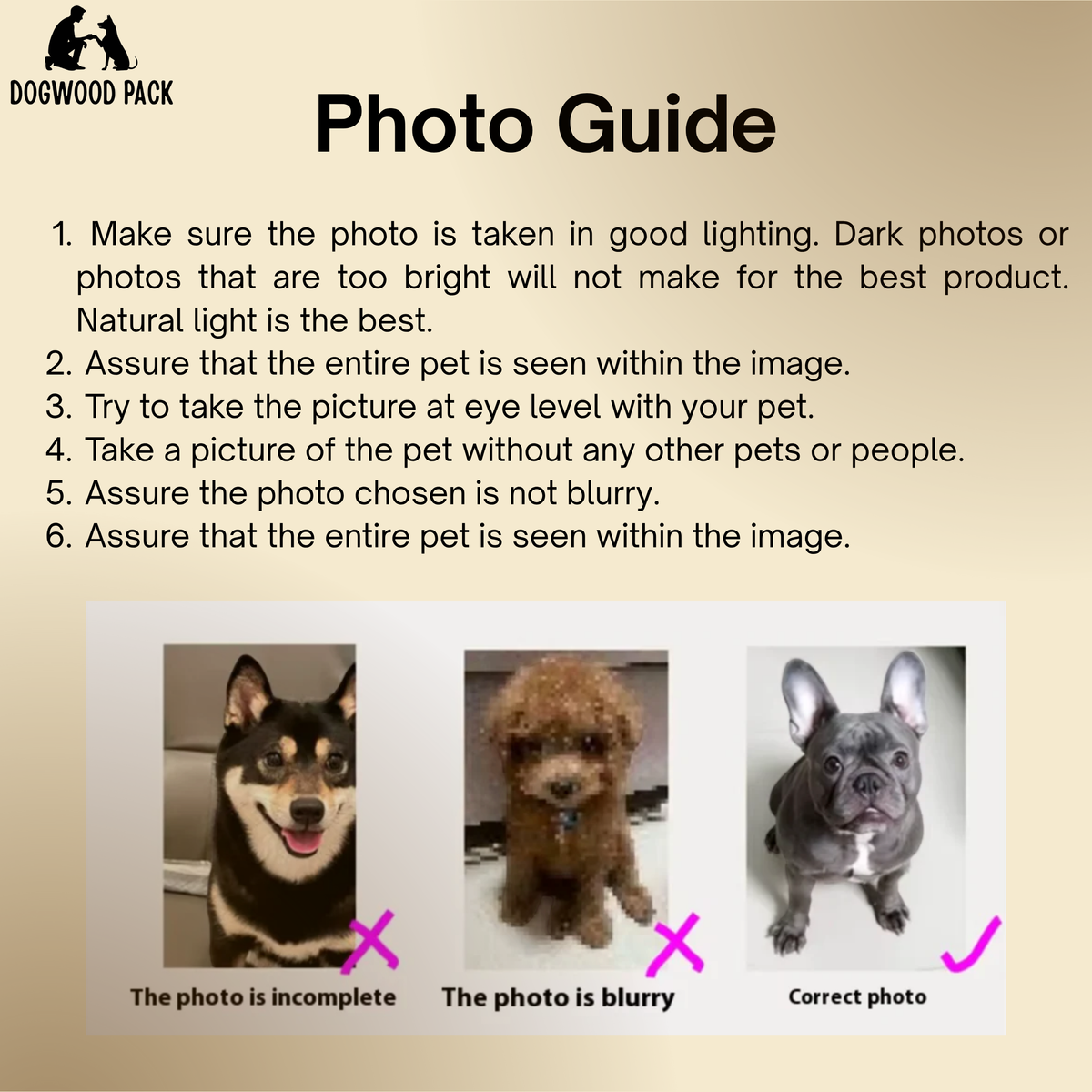 Because Dogwood Pack custom pet blankets are made to order and personalized, we’re unable to accept general returns or exchanges. Please double-check your photos, text, and customization details before placing your order. Once production begins, changes can’t be made.